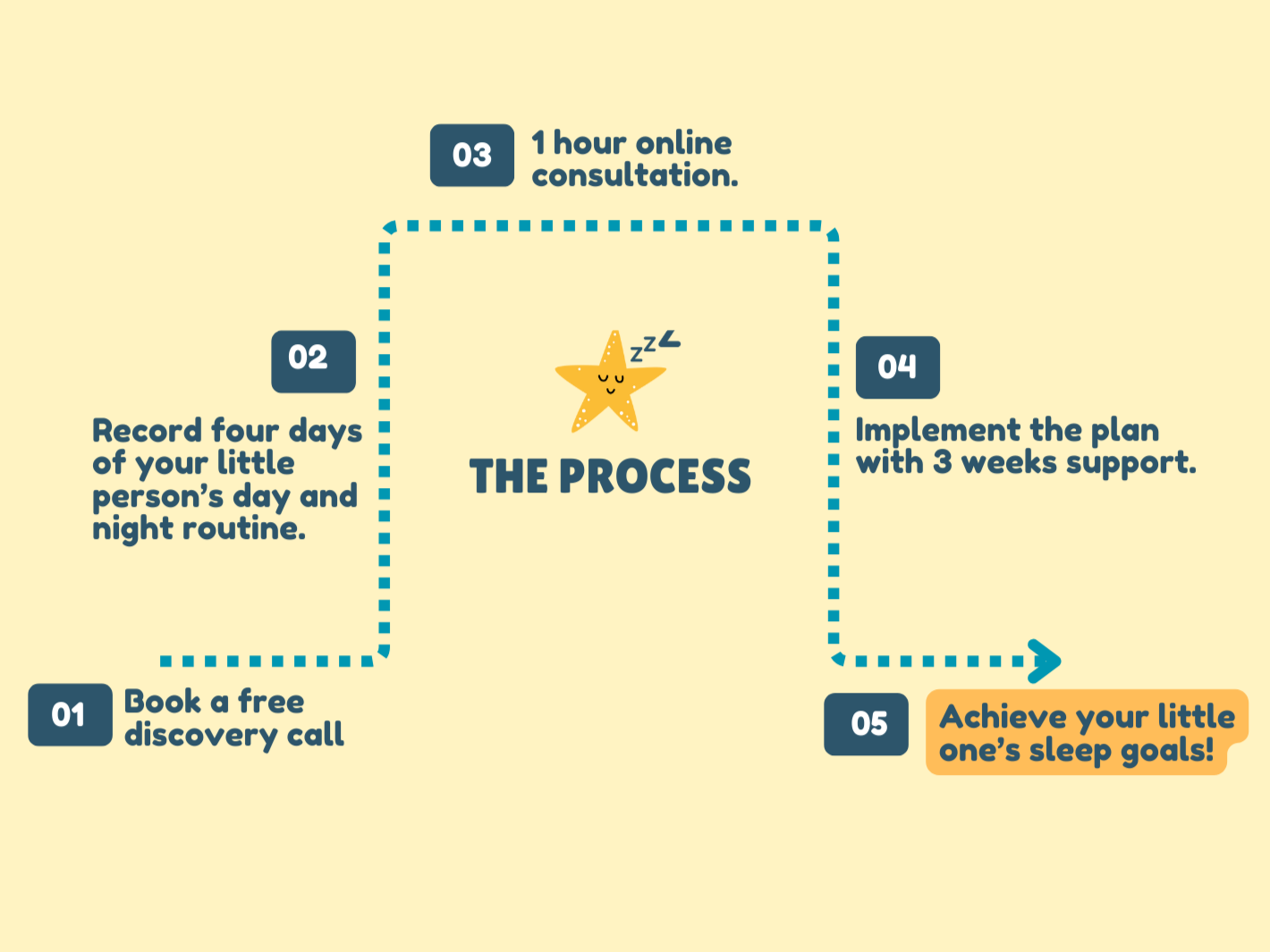 1 hour online sleep consultation to discuss your challenges and goals. Feel heard, gain clarity, and leave with confidence in a plan that fits your family.